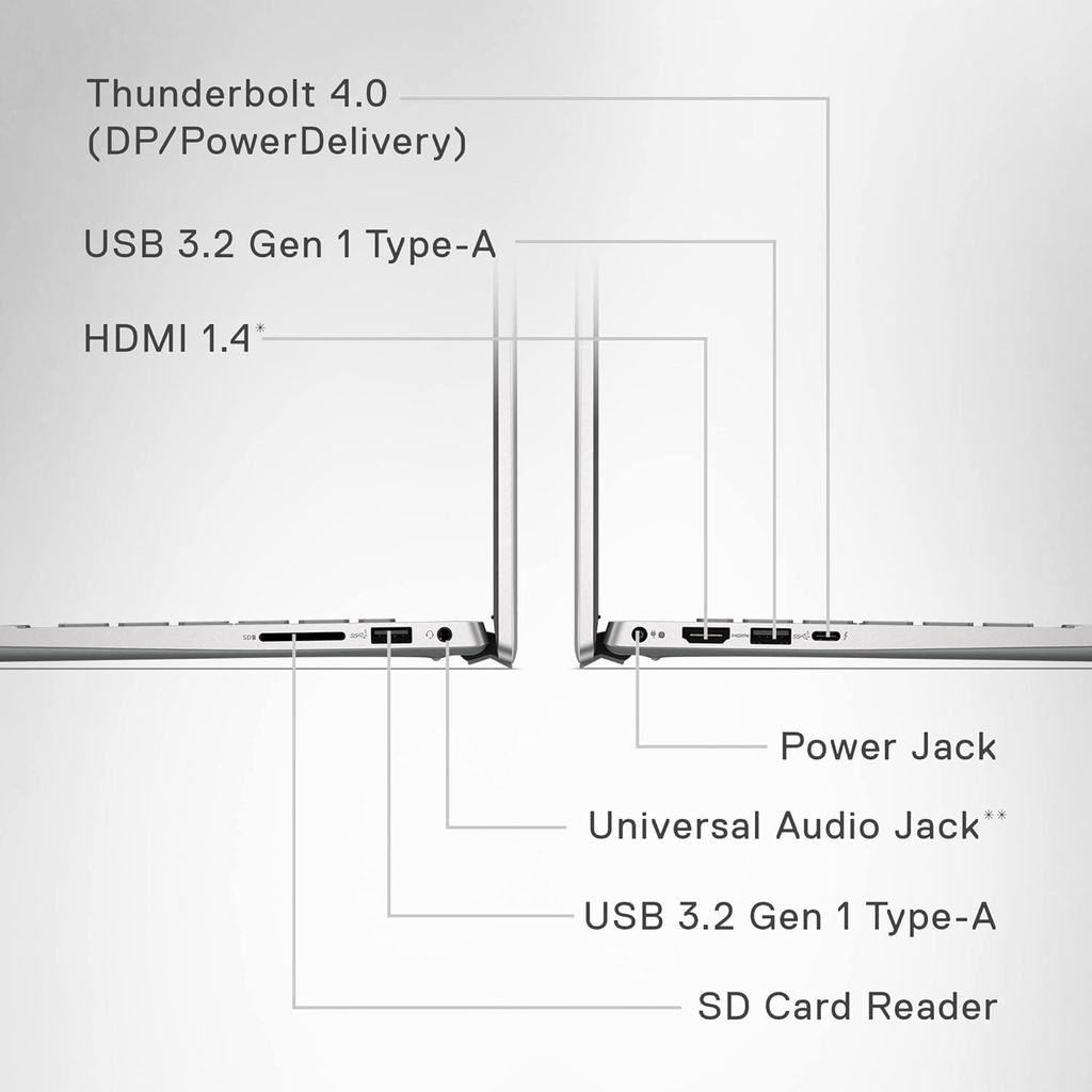 Dell không quên trang bị cho chiếc máy này hệ thống cổng kết nối phổ biến: USB-A, USB-C, HDMI, jack 3.5mm và đầu đọc thẻ, cho phép bạn dễ dàng kết nối với các thiết bị ngoại vi như màn hình phụ, ổ cứng ngoài, chuột hoặc bàn phím rời.
