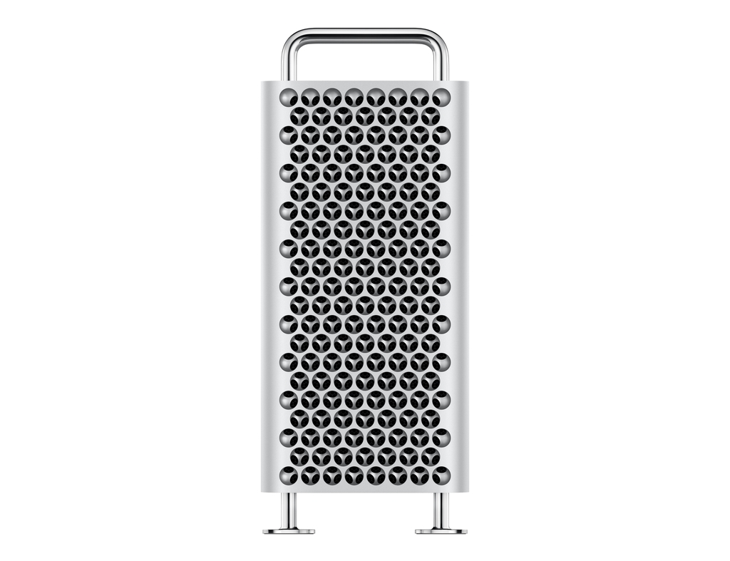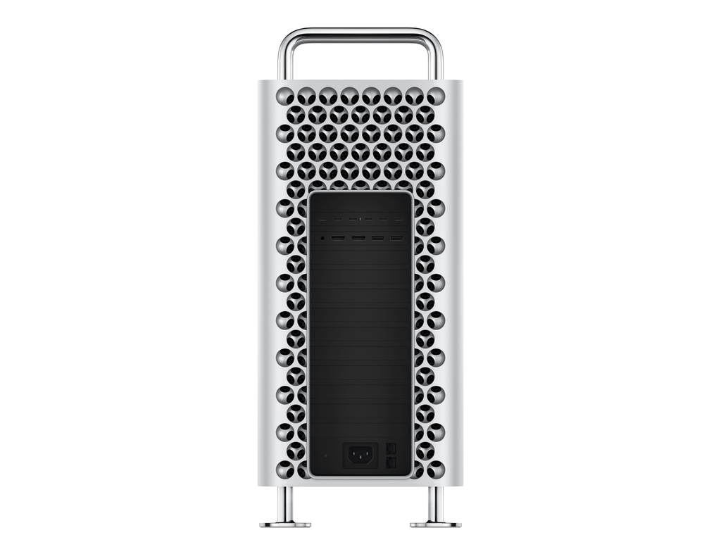 Vẫn trung thành với thiết kế nhôm nguyên khối màu bạc (Silver) đặc trưng, Mac Pro Tower 2023 mang lại cảm giác mạnh mẽ, cứng cáp nhưng vẫn sang trọng và tinh tế. Các lỗ thông khí phía trước và sau được cắt CNC tỉ mỉ không chỉ tạo điểm nhấn về thị giác mà còn đảm bảo lưu thông khí tối ưu để giữ hệ thống luôn mát mẻ khi vận hành ở hiệu suất cao.